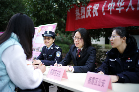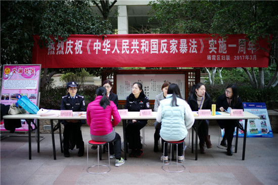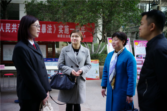 为庆祝《中华人民共和国反家暴法》实施1周年暨“ 三八”国际劳动妇女节107周年, 3月4日(周六),栖霞法院未成年人及家事案件审判庭副庭长杨燕一行人与栖霞区妇联、栖霞区公安局等部门到栖霞区东方天郡社区,开展送法进社区法制宣传活动。
