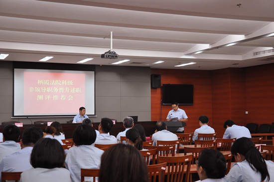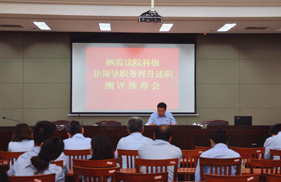5月27日上午,栖霞法院召开科级非领导职务晋升述职评议会。会议由院党组成员、副院长兼政治处主任胡雷主持,全体干警参加了会议。