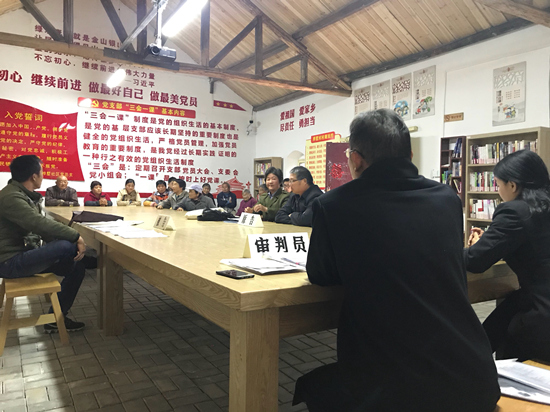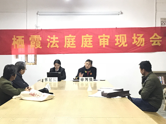 11月16日下午,栖霞法院栖霞法庭庭长许庆林来到西岗街道陈岗村陈岗学堂,就两户农民承包土地而引发的四起纠纷进行了公开开庭审理。
