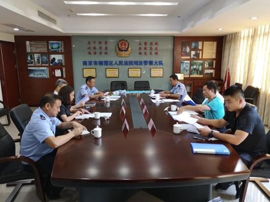 7月19日,苏州市中院法警支队副政委龚杰率督查组到栖霞法院督查指导司法警务安全工作,南京市中院法警支队队长刘国明、栖霞法院院长李传松、栖霞法院副院长吕宁华参加了座谈会。