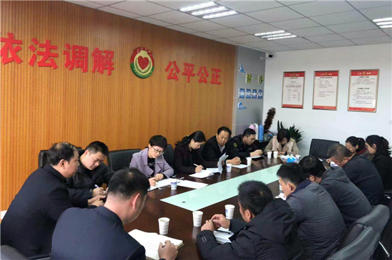 11月22日下午,栖霞法院立案庭诉调对接中心与马群司法所、马群街道在多元解纷诉调对接中心马群示范点召开座谈会,就化解马群片区“廉租房”纠纷进行讨论。
