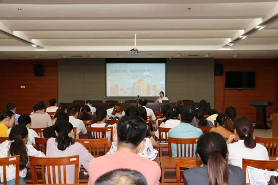 为提高法院工作人员对垃圾分类的认识,掌握垃圾分类的正确方法,8月8日下午,栖霞区法院组织开展垃圾分类培训。