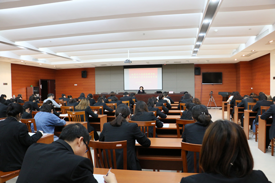 竞赛开始前,栖霞区法院党组成员、政治部主任叶琳作了动员讲话并介绍了竞赛规则。本次竞赛用一天时间,共分为理论知识、文字速录、庭审记录和卷宗归档四个项目进行比赛,每一项均是对书记员实务技能的进一步考察。理论知识环节采用闭卷考试方式,知识点涵盖省高院《书记员工作手册》《法律词条汇编》《书记员岗位等级标准(江苏地区法院试行)》《中华人民共和国民事诉讼法》以及日常送达、审判管理等实务,主要考察书记员的法律常识、操作实务、岗位职责要点和文书校对等业务技能。