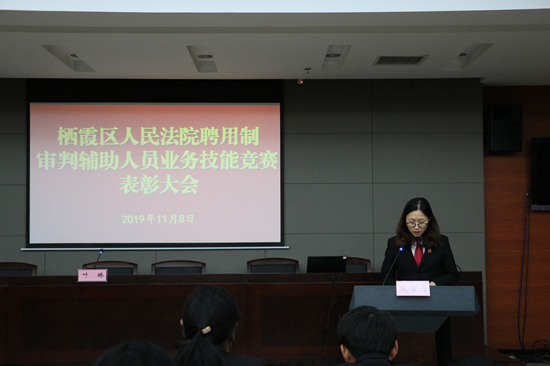 11月8日下午,栖霞区法院召开聘用制审判辅助人员业务技能竞赛表彰大会,对在技能竞赛中经过激烈角逐脱颖而出的15名书记员进行了嘉奖,全体聘用制人员参加会议。