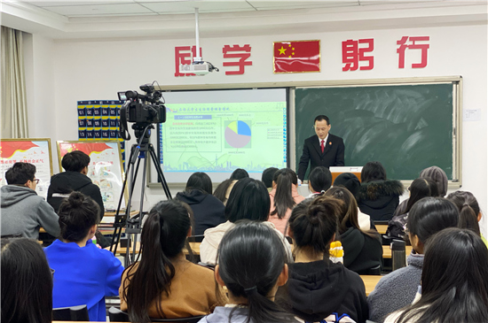 为了提升法律讲座的针对性,栖霞法庭事先精心准备了5个展板,将需要讲解的内容在展板上列出,让同学们课前进行浏览、记录,初步了解认识当前“扫黑除恶”的形势,了解“校园贷与套路贷”的区别、危害性。韩栋法官作了题为“青春不负债,远离套路贷”的授课。韩法官用近期审理的两起在校学生深陷“校园贷”的案例,采用图文并茂的PPT方式进行讲解,深刻剖析了“校园贷”的种类、手段以及严重危害性。警示学生们要遵纪守法,不要做让自己后悔、家庭蒙羞、社会不安的糊涂事情,告诫学生们要增强自我防范意识,自觉抵制不健康网站、“校园贷”广告等因素的干扰诱惑,树立正确的消费观、人生观、价值观,珍惜在校的学习时光,以真才实学回报家庭和社会。