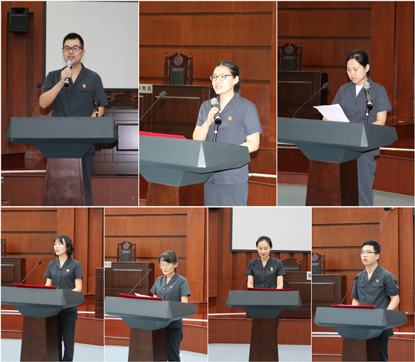 会上,七名宣讲人立足先进典型事迹,结合自身实际,分别以《球友、战友、朋友》《时代先锋学习楷模》《栖法兰台的追梦人》《无悔的青春 奉献的年华》《青春韶华浇筑执行梦想 党性光辉引领司法人生》《柔情善断促公正 忠诚担当筑法魂》《初心不改 奋勇争先》为题,讲述了在法院日常工作生活中的所思所感,歌颂了身边优秀党员、优秀法官的先进事迹。宣讲人声情并茂的宣讲,向我们展现了一个个先进典型鲜活的事迹:既有审判法官的勇于担当,又有执行干警的艰辛与收获;既有青年干警的成长与奋斗,又有老法官的执著与坚守。