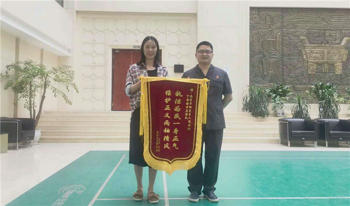 近日,栖霞区法院民一庭法官助理程洁接到了一起房屋租赁合同纠纷案当事人的电话,称其案件已经二审法院维持原判,特此向一审法院的承办法官丁旦及审判团队送上书有“执法为民一身正气,维护正义两袖清风”的锦旗表示感谢。