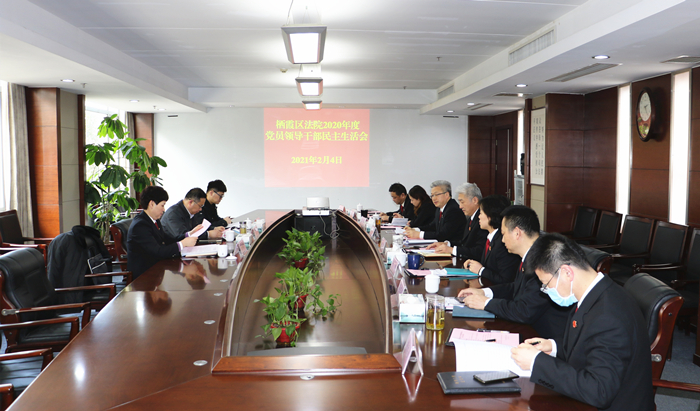 2月4日下午,栖霞区法院以“认真学习贯彻习近平新时代中国特色社会主义思想,加强政治建设,提高政治能力,坚守人民情怀,夺取决胜全面建成小康社会、实现第一个百年奋斗目标的伟大胜利,开启全面建设社会主义现代化国家新征程”为主题,召开2020年度党员领导干部民主生活会,区法院全体党组成员参加会议,区法院审委会专职委员王琼列席会议。南京中院审委会专职委员芮铭珍,区委常委、政法委书记秦志刚,区纪委监察委派驻第四纪检监察组副组长芮宁生到会督导。区法院党组书记、院长李传松主持会议。