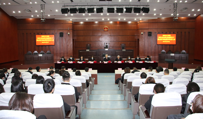院党组书记、院长李传松在讲话中简要回顾了全院2020年的主要工作情况和取得的成绩,深入分析当前面临的形势,着重从九个方面对今年工作作出部署:一是加强理论武装,积极践行习近平法治思想;二是加强刑事审判,推进平安栖霞建设;三是加强民商事审判,营造法治化营商环境;四是加强涉民生案件审理执行,维护群众权益;五是完善长效机制,稳步推进切实解决执行难;六是深化无讼社区创建,有效融入基层社会治理;七是加强审判管理,提升审判质效;八是深化司法改革,提升工作效能;九是从严管党治院,打造过硬队伍。