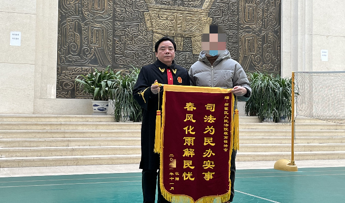 近日,栖霞区法院少年及家事审判庭庭长程前葆收到同一起案件中原被告双方分别送来的锦旗,感谢他公正审判、兼顾情理,不仅解决纠纷,更化解了原被告之间的矛盾,真正做到为民解忧。