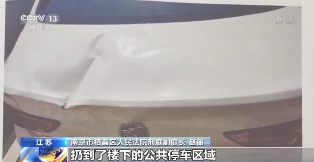 南京市栖霞区人民法院刑庭副庭长 赵丽:这个电视机大概有10斤左右,长大概有70多厘米,高大概有40多厘米。她就把这个电视机当时搬下来,用脚去踹,当时没有踹坏,她的情绪没有排解掉。她就把电视机搬到阳台上,然后用鞋子去拍,拍打了之后电视机安然无恙,一气之下把电视机扔到了楼下的公共停车区域。